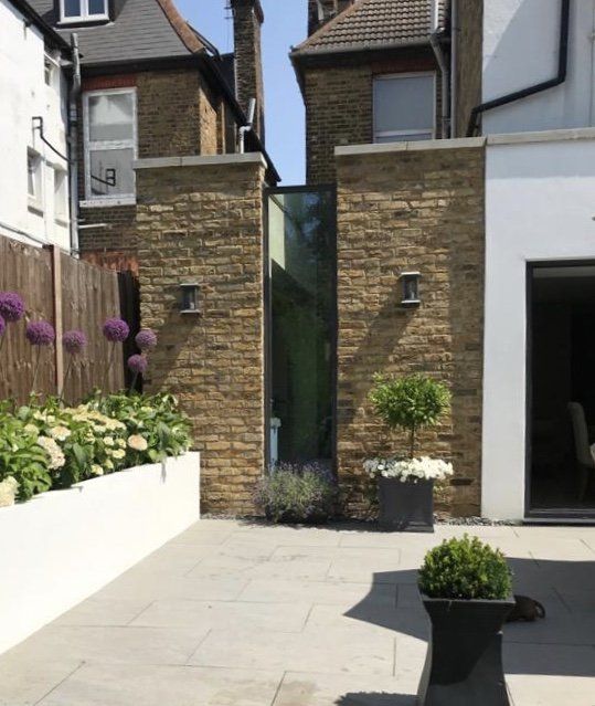 The design features structural glazing over the kitchen in order to maintain a direct view from the new courtyard garden.